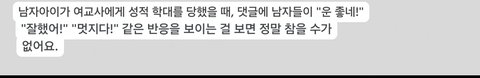 +댓글에 딴지거는애들 있는데 아래사진은 한국이 아닌 해외커뮤니티에서 영어로된 댓글 번역한거니까 지랄ㄴㄴ 해외에서도 남자들이 같은 남성피해자한테 역한 댓글 다는건 한국이랑 똑같음