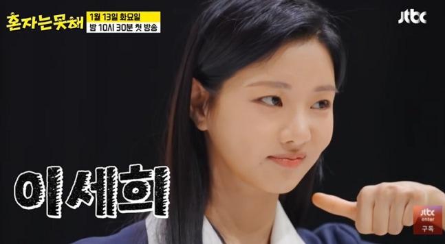 코미디언 이수지와 배우 이세희가 특별한 케미를 선보인다. JTBC 신규 예능 '혼자는 못 해'가 1월 13일 첫 방송된다. 이수지는 연예 대상의 전현무와 이세희와 함께 가족 같은 케미를 자랑할 예정이다. '혼자는 못 해'는 오는 1월 13일(화) 밤 10시 30분 첫 방송되는 '게스트 맞춤 팀플 버라이어티' 예능이다. 게스트가 혼자 하기 버겁거나 용기가 없어 미뤄둔 일을 함께 나누고 싶은 모든 일을 같이 해주는 프로그램이다.