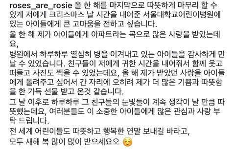 크리스마스 파티나 플렉스하는 행사들 다닐 수도 있었을 텐데 그런 거 다 제쳐두고 아이들 병원 가서 매일매일 살아가려고 싸우는 애들이랑 시간 보냈다는 거 듣고 진짜 울컥함 ㅠ 크리스마스 선물까지 직접 챙겨줬다던데