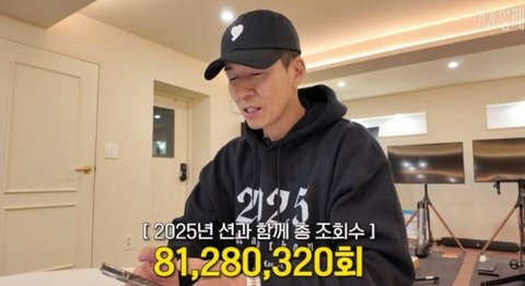 션에 따르면 2025년 한 해 채널 총 조회수는 8128만 회다. 션은 "8000만이나 나왔으니 너무 좋은 숫자"라고 만족하면서도 "그래도 1억 조회수가 나왔으면 더 좋았을 텐데 조금 아쉽다. 내년엔 더 열심히 해야겠다"라고 솔직하게 덧붙였다.