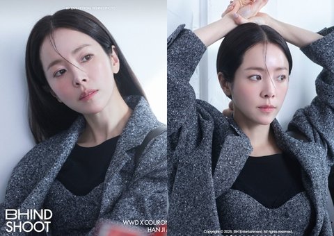 한지민은 12월 30일 개인 소셜미디어 스토리에 소속사 BH엔터테인먼트가 공개한 화보 비하인드컷 게시물을 공유했다.