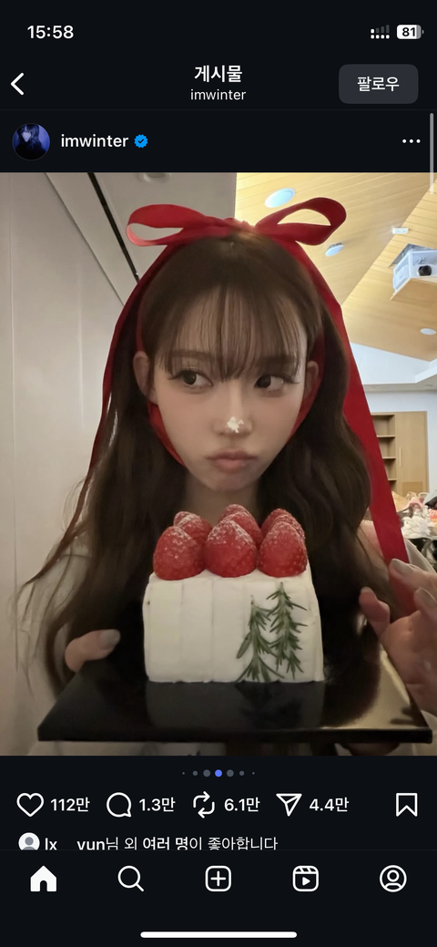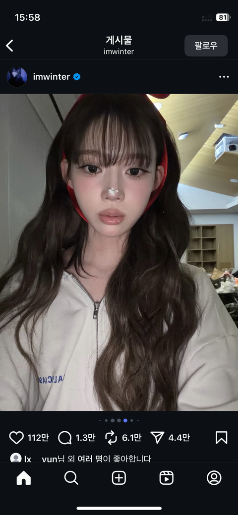 오늘 올린 게시물보고 충격먹음 윈터인지 못알아봄 아니..데뷔때부터 개이뻤는데 애 얼굴을 왜이렇게 한거임?? 아니 지금도 당연히 예쁘긴 진짜 이쁘거든? 얼굴조그만하고 눈도 크고 완벽한 미녀얼굴임..., 근데 데뷔초 윈터 특유의 상큼하고 청순했던 느낌이 사라짐 와.......아니..sm추구미가 중국 인플루언서인가? 이젠 예쁘다를 넘어서 저렇게까지 해도 되는지가 궁금함