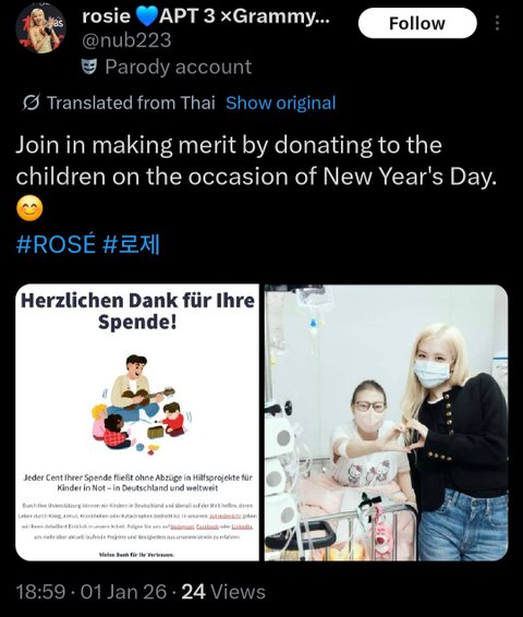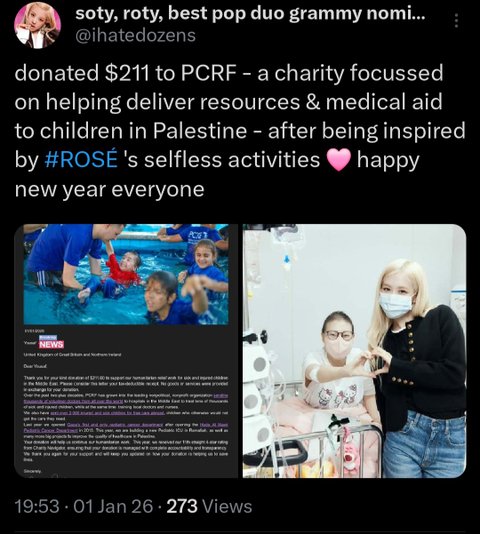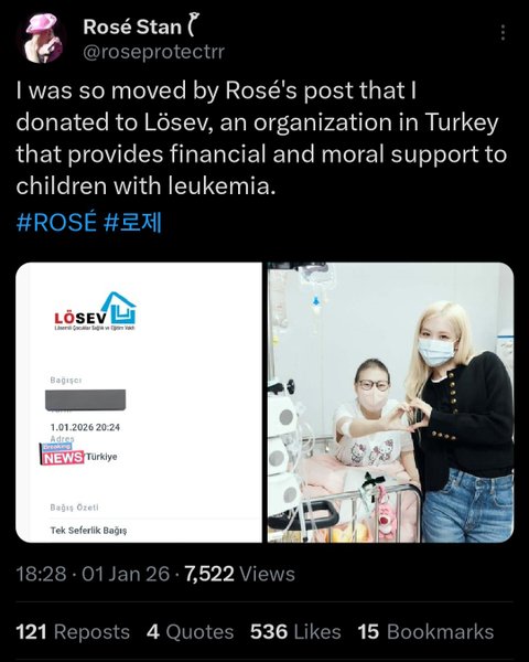 로제가 아이들 병원 갔다는 소식 보고 팬들 반응 보는데 진짜 훈훈함… 그냥 칭찬에서 끝나는 게 아니라 그거 보고 기부했다, 후원 시작했다는 사람들 계속 나오는 거 너무 대단함.
