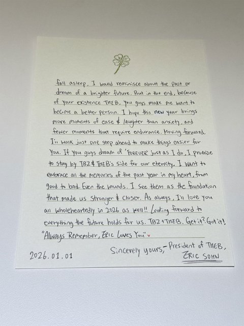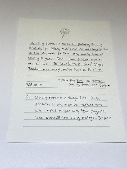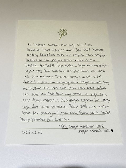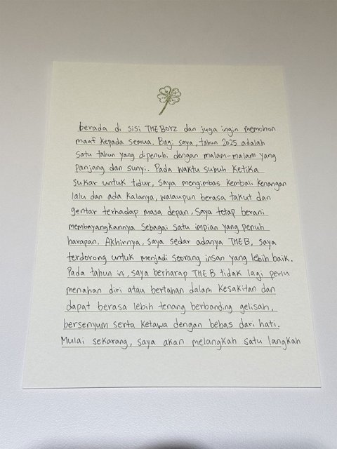 이게 새해 기념으로 본인 팬들에게 7개 국어로 쓴 것들 중 하나인 태국어 편지