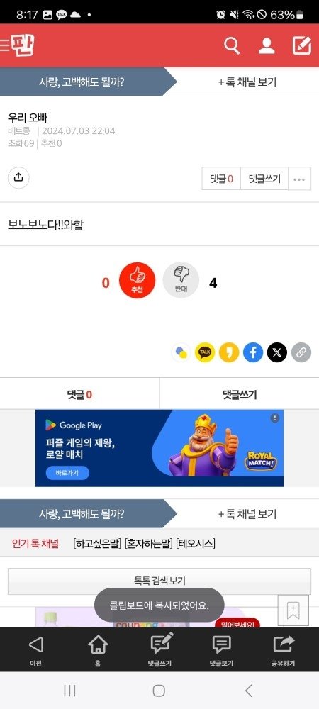 '팥빵이'라고 닉네임 띄우고.