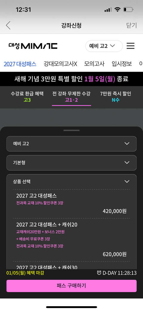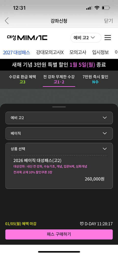 예비고2대성 베이직패스vs대성패스