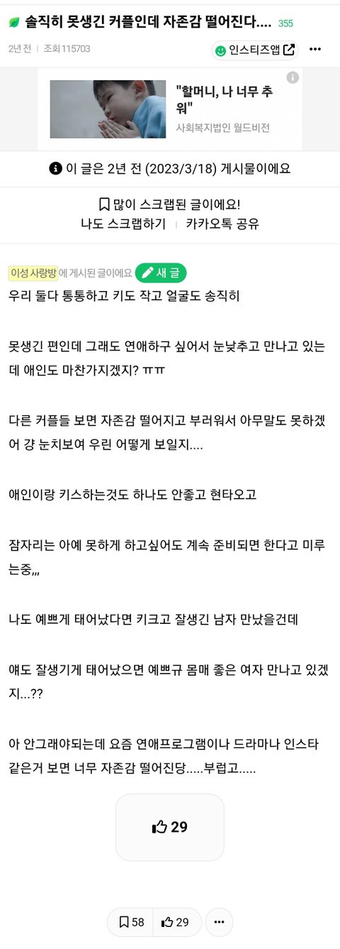 솔직히 못생긴 커플인데 자존감 떨어진다....
