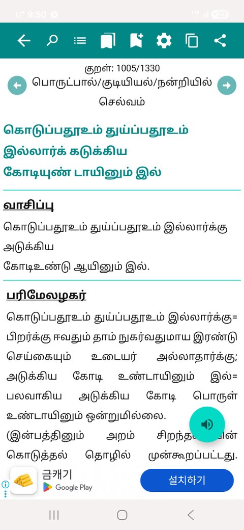 வாசிப்பு: கொடுப்பதூஉம் துய்ப்பதூஉம் இல்லார்க்கு அடுக்கிய கோடிஉண்டு ஆயினும் இல்.