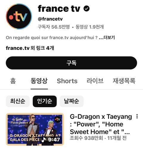 프랑스tv 채널 역대 최고 조회수가 작년 지디태양 무대