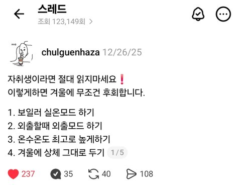 10만명이 본 난방비 폭탄 피하기 (쓰레드펌)