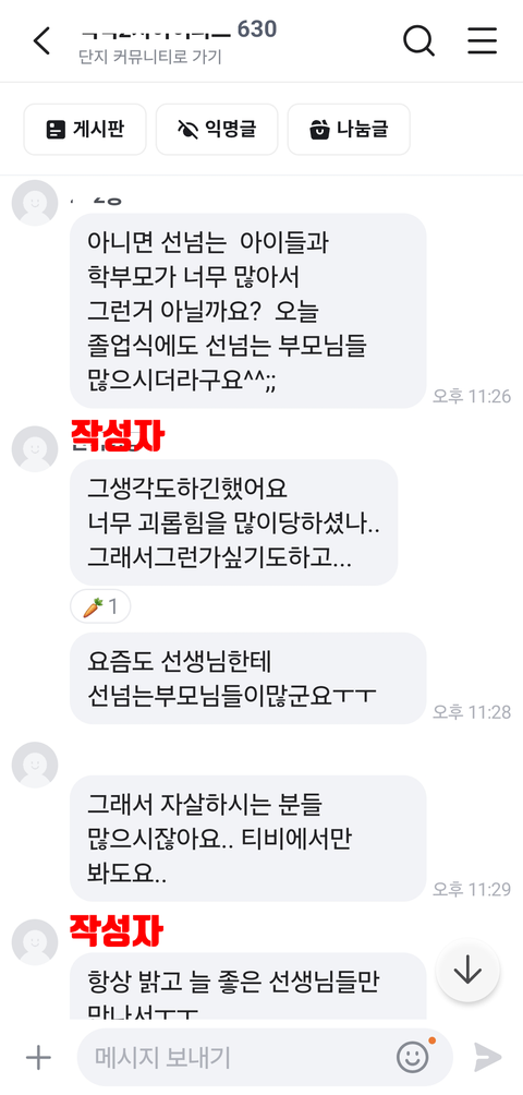 자기 지인들은 전부 이상하다며 선생을 지적하는 내용으로 여론몰이 했으나 실패..