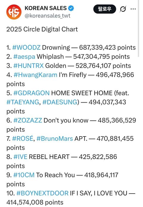작년에 판에서 누가 오알럽 개듣보곡이다 연간도 못들지 않았냐고 했는데 ㅂㅅ아 25년곡이니까 연간차트에 못들었겠지