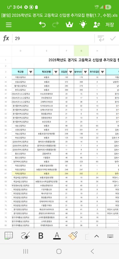 2026학년도 경기도 고등학교 신입생 추가모집 현황