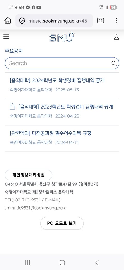 숙명여대 음대 작년5월이후 공지X , 학생 모집안하는지