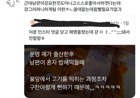 자기 남편이 밥해달라는 소리 안한 경우에도 여자 본인이 남편이 귀찮아서 밥 안먹을거라는거 알고 그꼴 못보겠다고 자처해서 밥해놓는 경우 ㅈㄴ 많이봄 진심 그러를 그러세요가됨