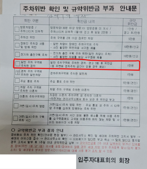 경차가 일반차량에 자리에 주차시 규약위반금 1만원경차자리가 없어서 일반구역에 주차한후 집에 들어간사이에 경차 자리가 나면....