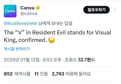 Canva 공계가 뷔 사진에 댓글 달았네