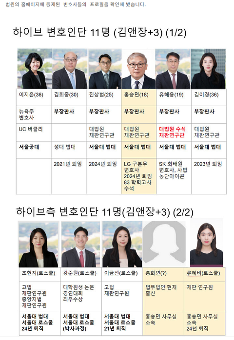 뉴진스 민희진측 변호사 프로필도 비교해봐ㅋㅋㅋㅋ 느그 민희진 느그 뉴진스도 전관 한 트럭 갖다 썼으니까ㅋㅋㅋㅋ 전관변호사 그렇게나 갖다 쓰고도 완패한게 느그 뉴진스임ㅇㅇ