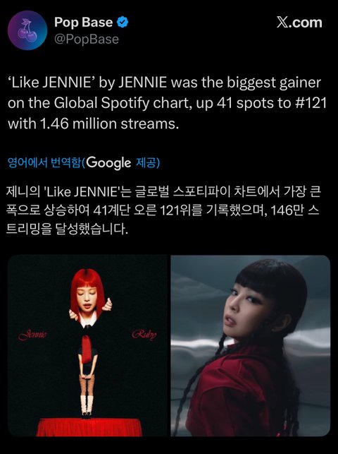스포티파이 k팝 솔로 가수 일간 스트리밍 1위 앨범