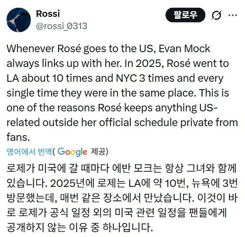 로제가 남친 만나느라 바쁜듯 전세계를 누비네