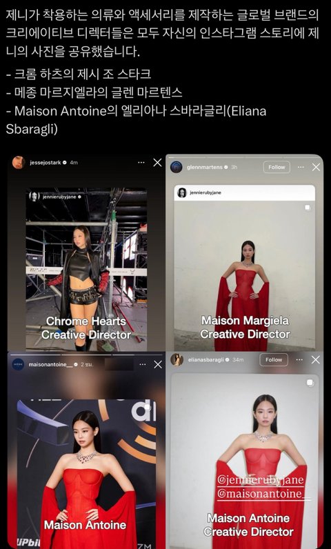 크롬하츠 크리에이티브 디렉터 인스스 크롬하츠 원래 협찬마저 잘 안해주는 브랜드로 유명한데 제니 시상식 의상으로 직접 커스텀해준 게 ㅈㄴ 지림..