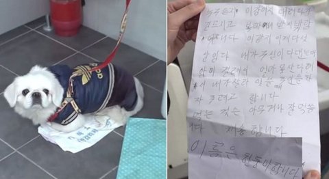 다른 주인 찾아주려고 ㅠㅠ 근데 그 방법을 모르시니 어쩔 수 없이 따뜻하고 사람 많이 다니는 공중화장실에 두고 가셨다고 저 편지와 함께 ㅠㅠㅠㅠㅠ  강아지 추울까봐 옷도 입혀 놓으시고 편지도 남겨뒀는데 두고 가시면서 얼마나 가슴이 찢어지셨을지 그저 안타깝)