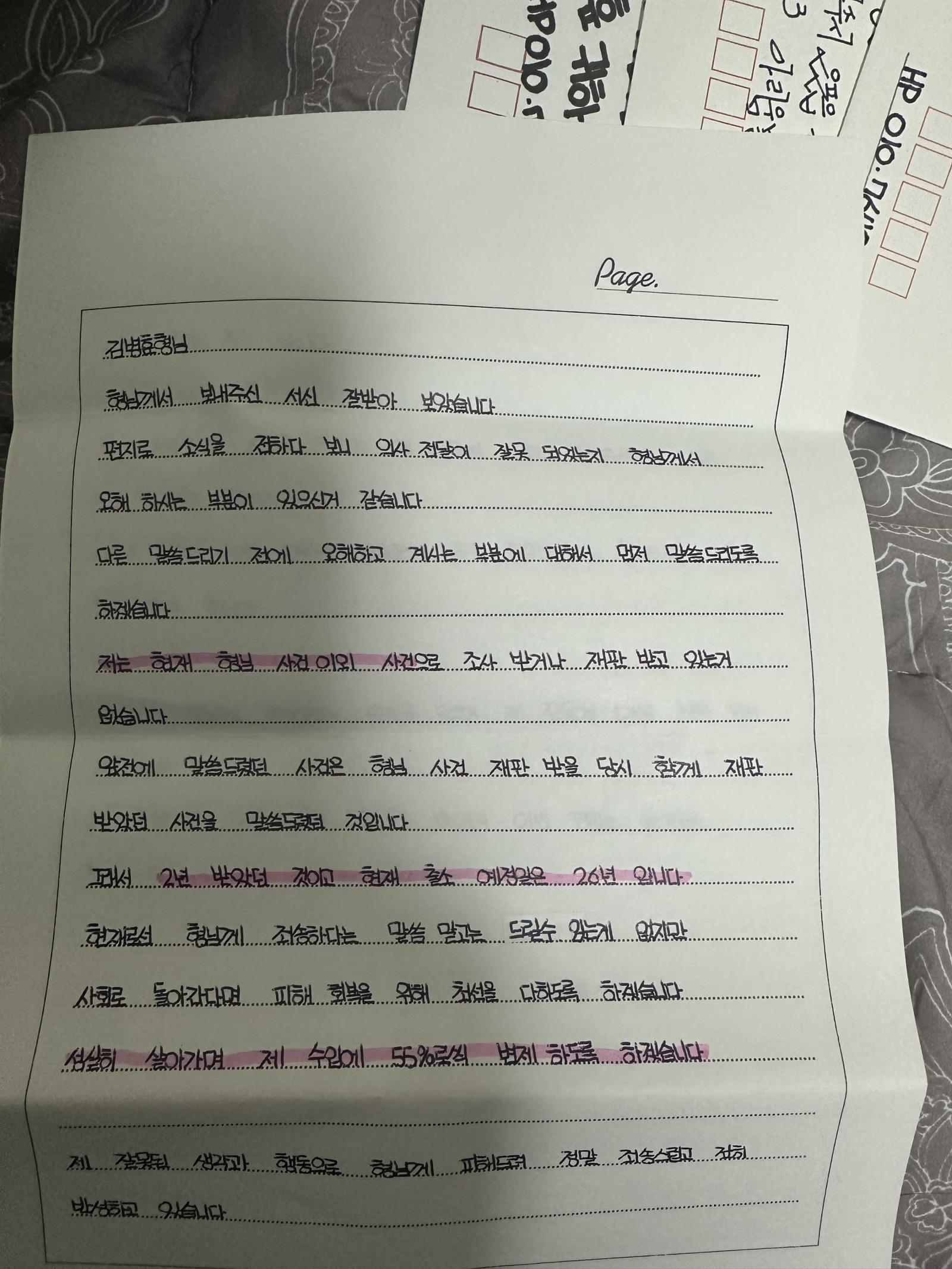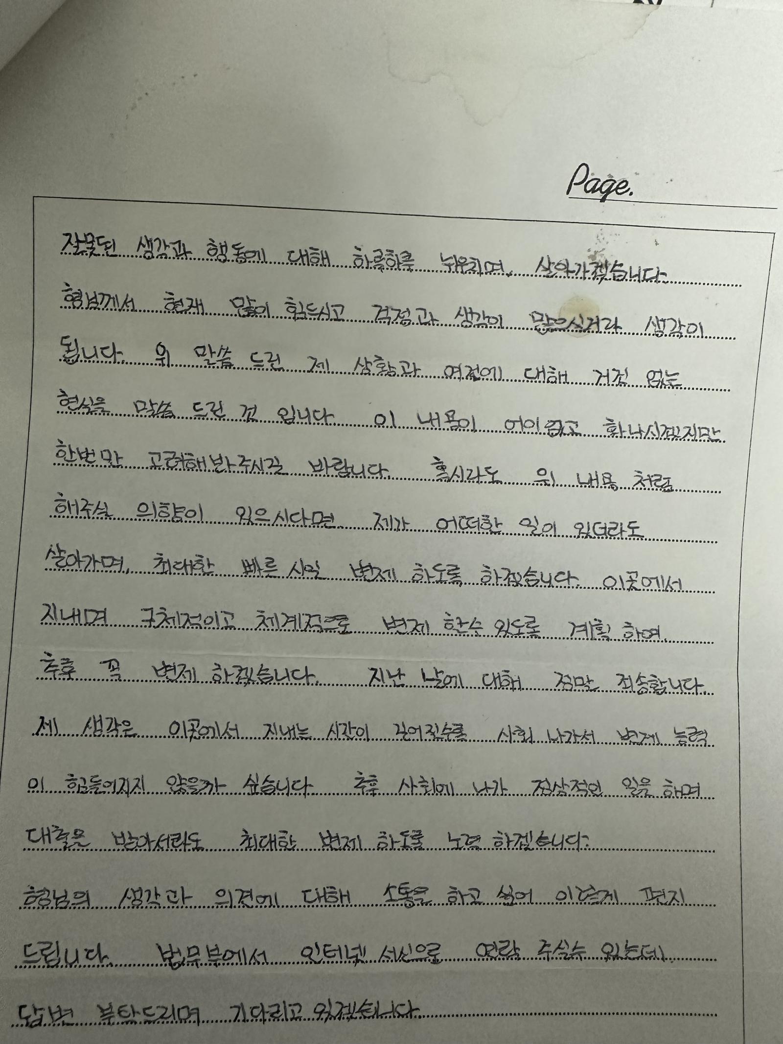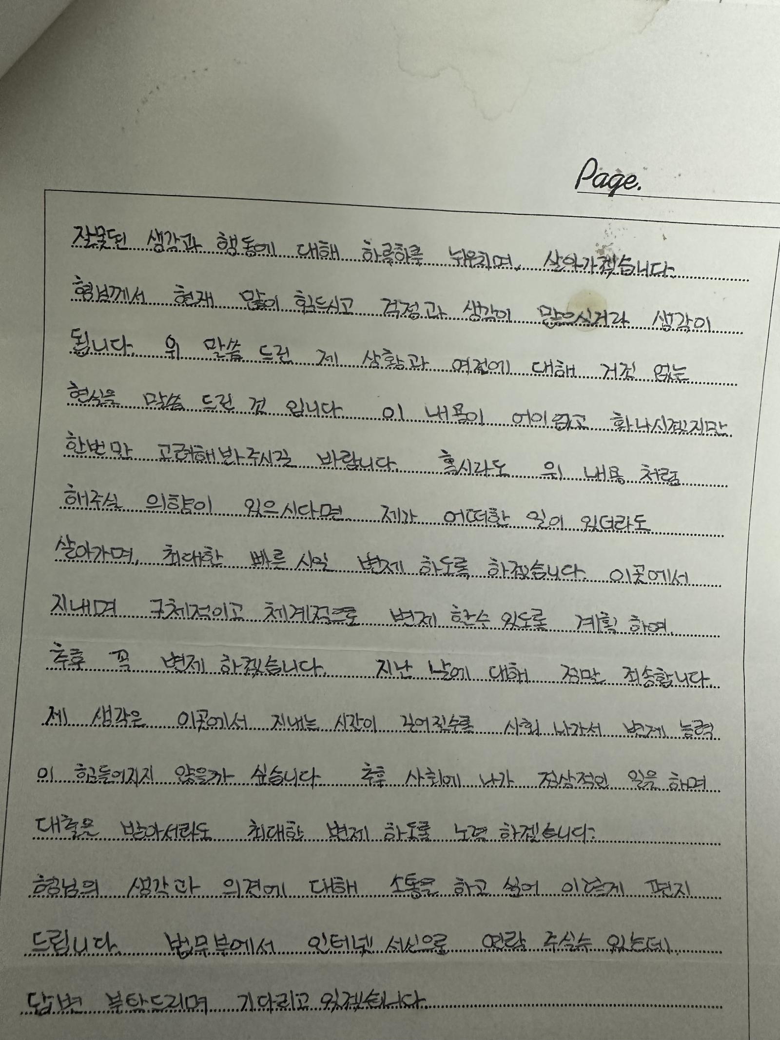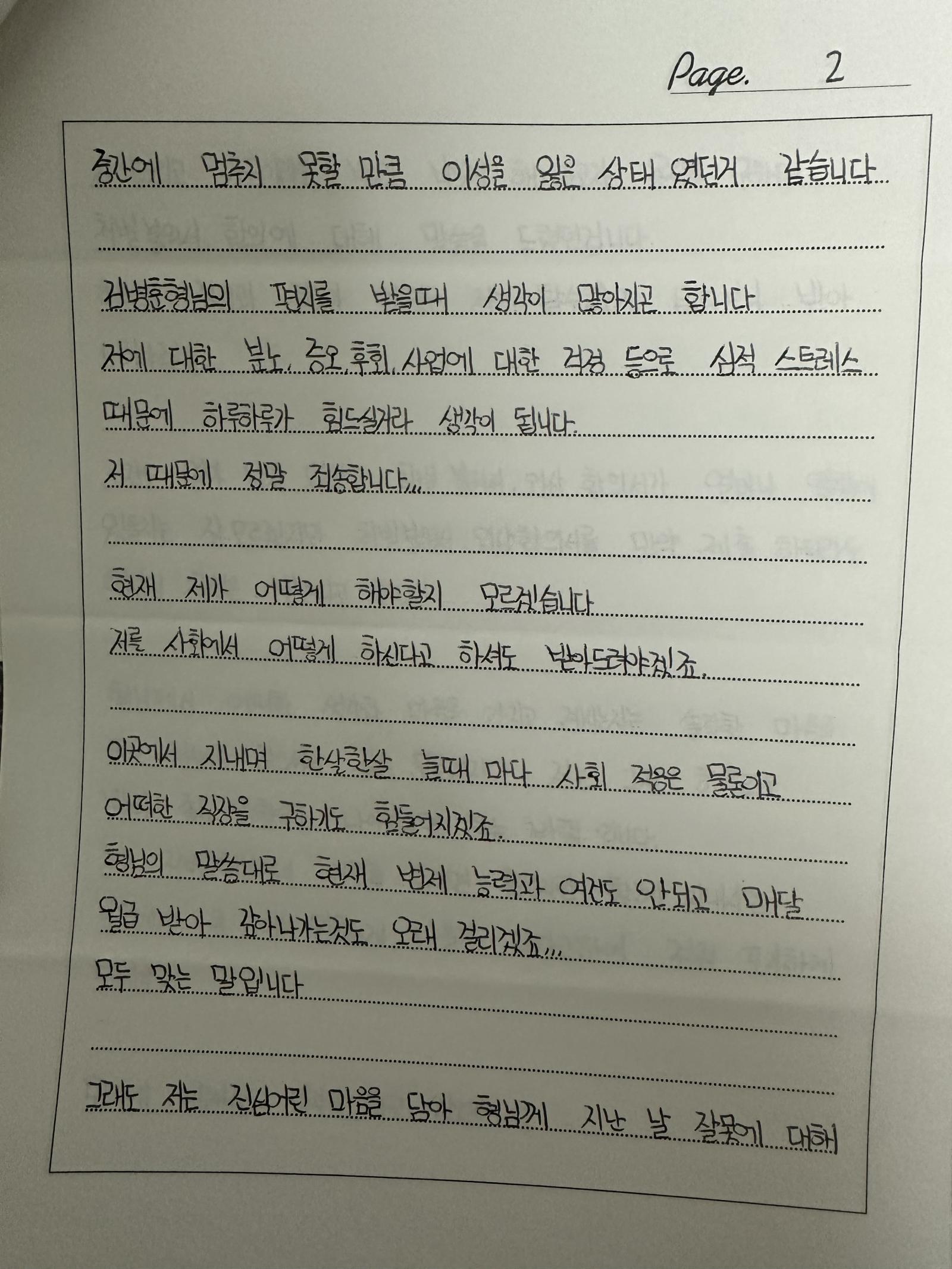 그러면서 총 네 분의 검사님들께서 여러 조언을 하셨고 저는 그 메뉴얼 대로 이동훈에게 편지를 계속 보내기 시작했습니다