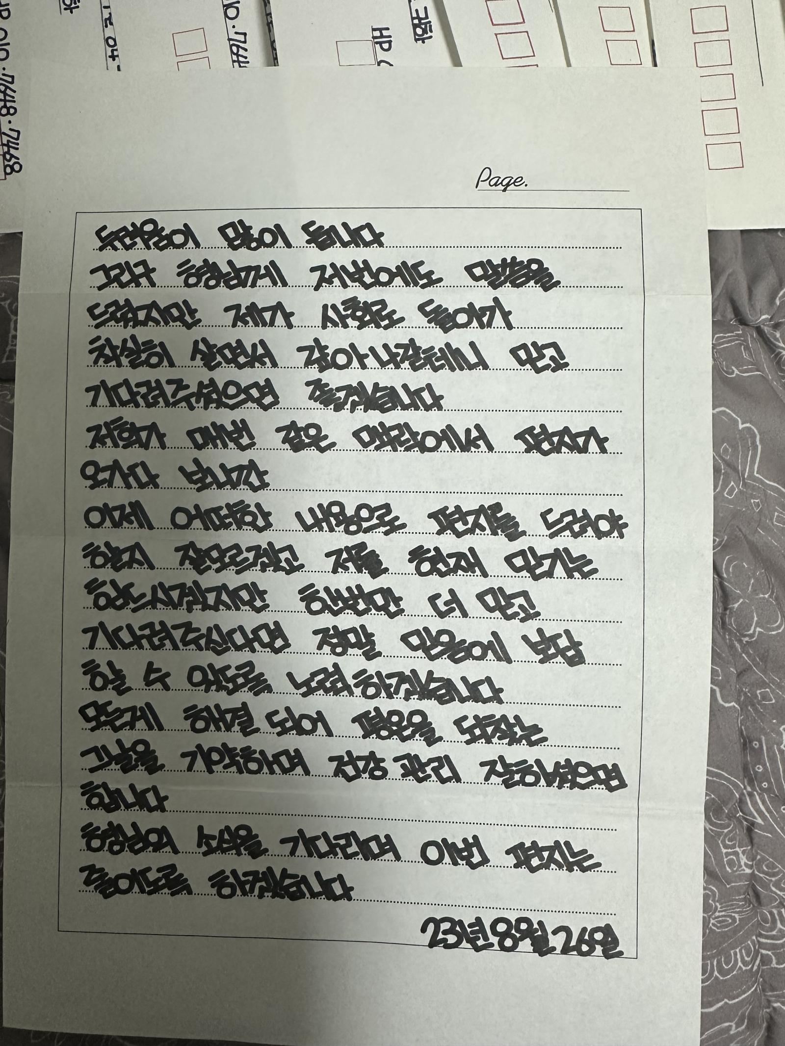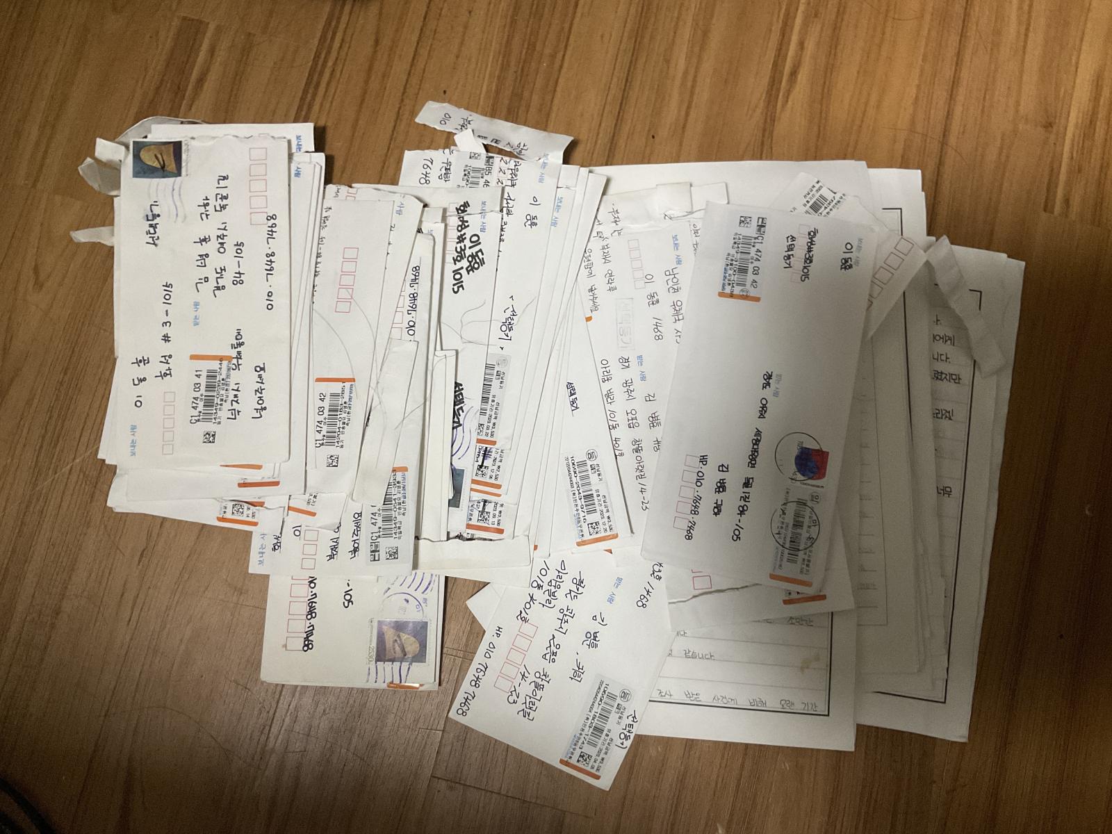 [[[[[출소해서 죽을 때까지 할 수 있는 만큼 상환을 하겠다]]]]]는 내용의 편지들 중 일부입니다