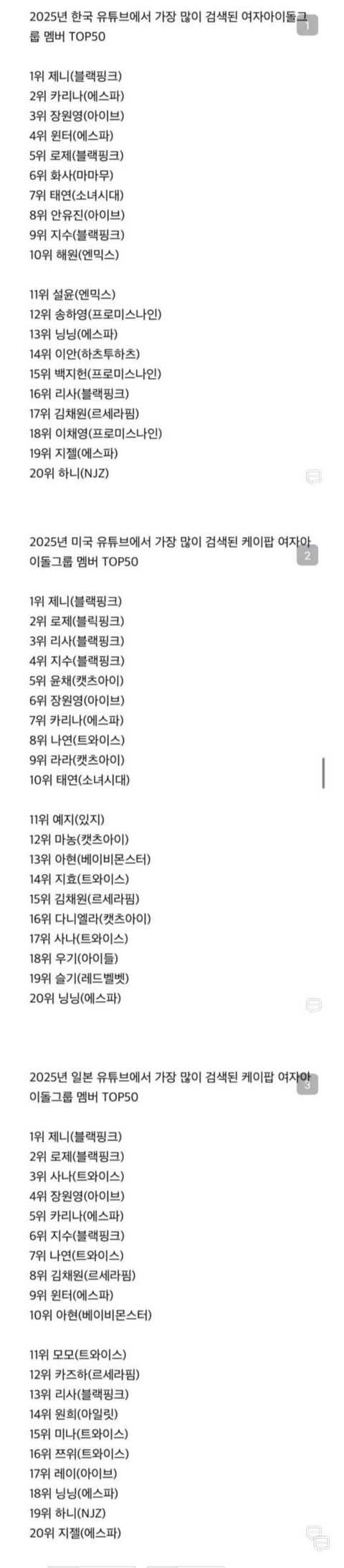 중국판 인스타 샤오홍슈 2025년 k팝 아이돌 검색 순위