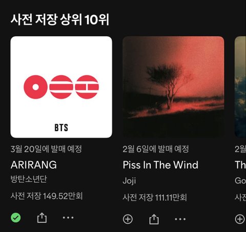 스포티파이 역사상 두 번째로 많이 프리세이브된 앨범