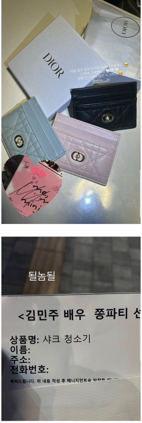 와 김민주 디올 행사 갔다가 드라마 쫑파티에 고생한 촬영팀 스탭분들에게 선물할 지갑구매하고 경품으로 타갈수있게 청소기도 사줬대 얼굴도 천상계로 예쁘고 마음도 천사네
