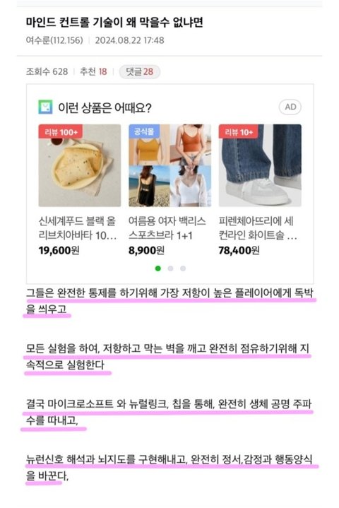 만일 어떤 사람이 이미 약물과 전자파류에 의해서 뒤뇌살해가 일어났을때, 이경우에 이사람이 제정신이 아니라는 소리를 듣지 않고는 이런 전략과 난해함을 도대체 자신들의 피해를 분명하고도 정확하게 밝히고 알리는것은 극도로 어려운일입니다.