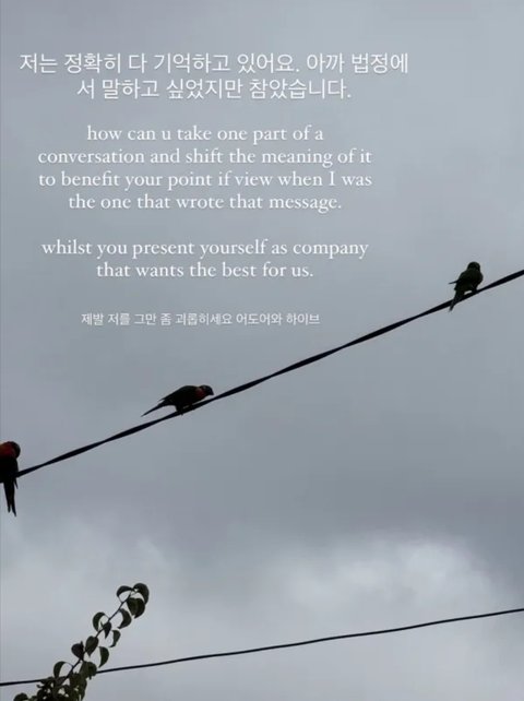 하니 법정 나온 뒤 인스타로 법정에서 참았습니다 마치 이거 보는 거 같네ㅋ 제발 인스타로 조언 감사 이런 말 그만하고 법정에서 얘기하길