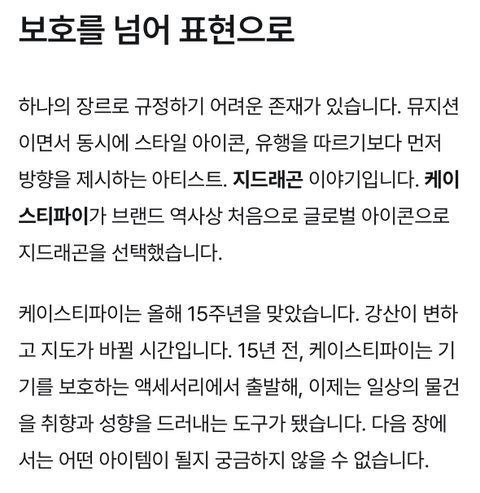 지디 케이스티파이 최초 글로벌 아이콘 됨