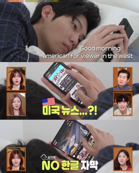 눈 뜨자마자 한국 자막 일절 없는 미국 뉴스 시청하는 손태진 ㅎㄷㄷ