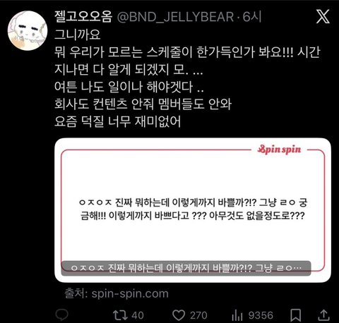 정규앨범 나온대서 바쁜거 알겠는데 그 정규 반년 뒤에야 나오잖아 지금 당장 원도어들 심심해서 죽어나감