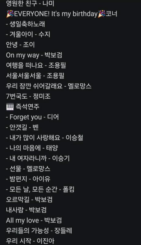 불러준 노래 리스트업만 봤는데 누구 콘서트인가 싶었음