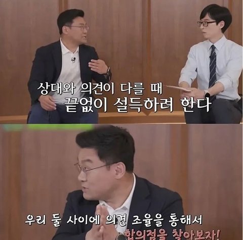 끝없이 설득하려고 하고 합의점을 찾으려고 한다고