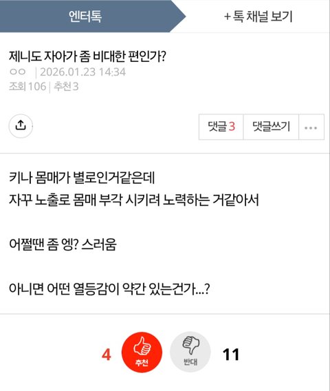 너무 투명해서 할말이 없다 제니퀴 또 타돌 머리채 잡기ㅋㅋ