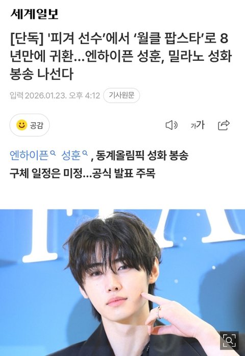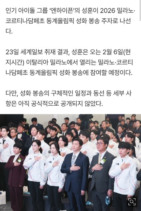 엔하이픈 성훈 동계올림픽 성화봉송한대