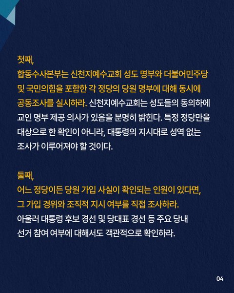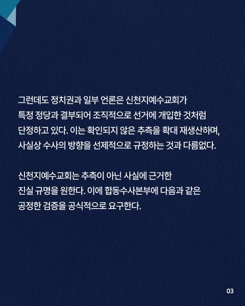 최근 일부 언론 매체에서 신천지예수교회를 둘러싼 의혹들이 제기되었습니다. 특히 대선 전 정치권 인사와의 비공개 만남 의혹과 특정 단체와의 연관설 등이 보도되었는데요, 이러한 사실 관련해서 신천지예수교회에서 "사실 확인조차 거치지 않은 명백한 허위 보도"라며 강력하게 반박하는 공식 입장문을 발표했습니다.