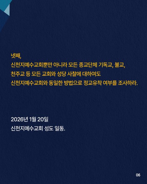 이에 신천지예수교회는 이번 허위 보도를 인용하거나 내용을 재생산하고 확대하여 유포하는 모든 행위에 대해 예외 없이 법적 조치를 취할 것이며,