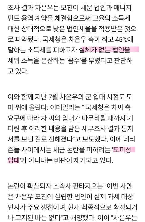 것보다 갑자기 뭐때문에 차은우 탈세가 갑자기 이슈가