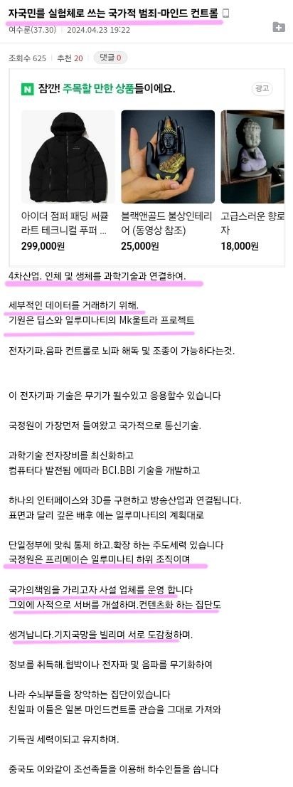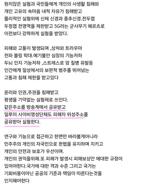 만일 어떤 사람이 이미 약물과 전자파류에 의해서 뒤뇌살해가 일어났을때, 이경우에 이사람이 제정신이 아니라는 소리를 듣지 않고는 이런 전략과 난해함을 도대체 자신들의 피해를 분명하고도 정확하게 밝히고 알리는것은 극도로 어려운일입니다.