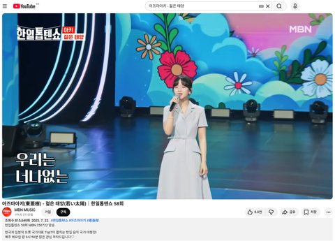 (사진5 설명) 아즈마아키(東亜樹) - 젊은 태양(若い太陽)|한일톱텐쇼 58회