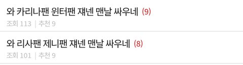 와 카리나팬 윈터팬 쟤넨 맨날 싸우네