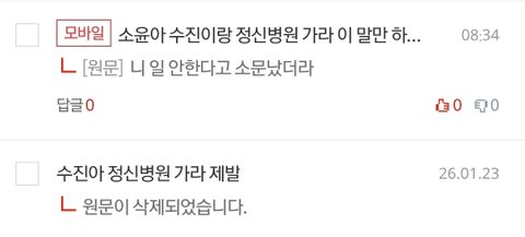 수진이 소윤이 네이트판 도배 그만하고 정신 차리는 날을 기대함 나는 계속 그만 하라고 댓글 다는 내가 아니라 계속 도배하는 소윤이 수진이가 대단한데 큰일이네