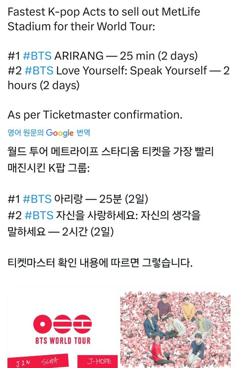 방탄 투어기록따였네ㅋㅋㅋㅋㅋ
