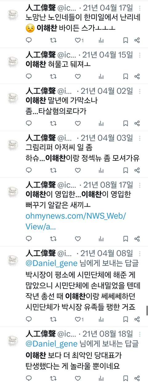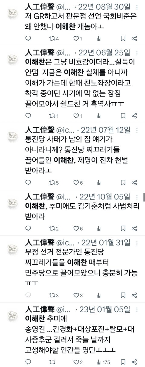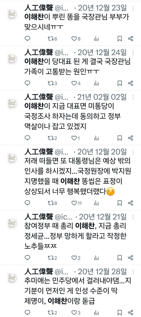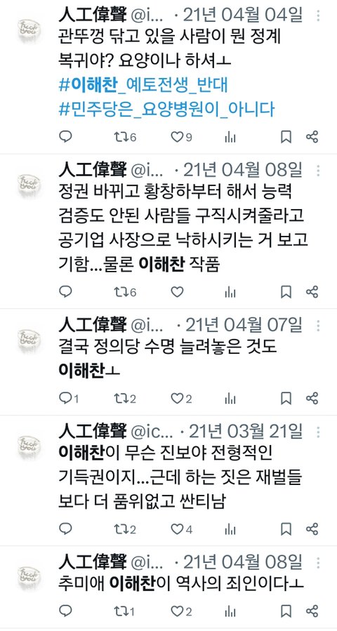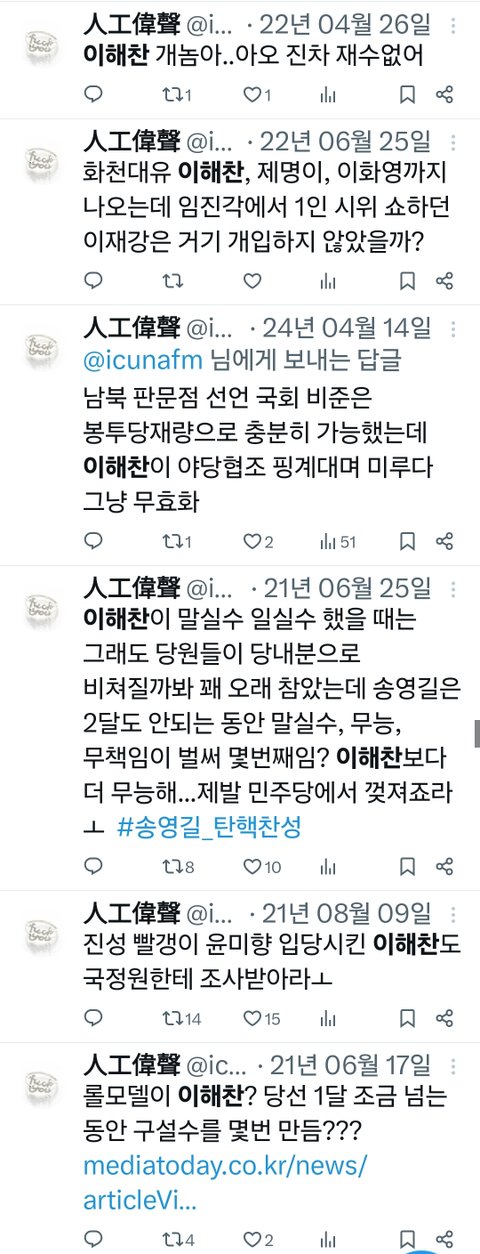 거의 모든 게시물에서 이해찬 전 대표를 핵심
