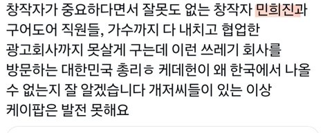 입만 열면 구라던데 민희진 지지하는거 신기하네ㅎㅎ